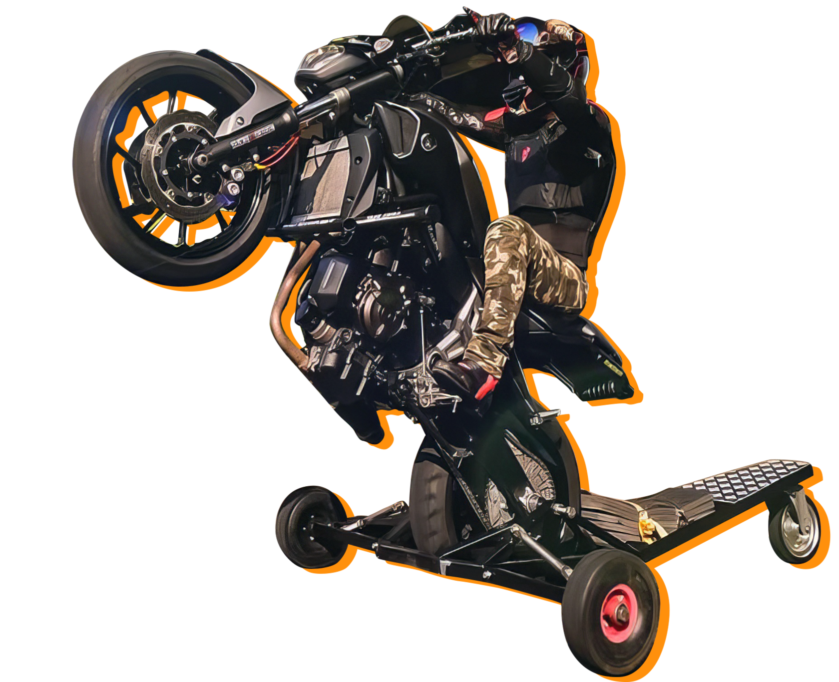 Независимая передвижная конструкция, которая страхует мотоцикл от поперечного наклона в бок и переворота при исполнении вилли. В отличие от стационарной Вилли Машины паук не симулятор, а ограничитель, который позволяет совершать естественный подрыв и проезд на заднем колесе.